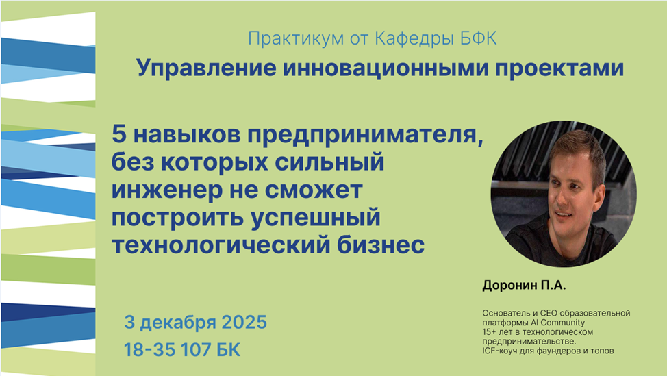 Спикер: Доронин Павел Александрович, основатель и СЕО образовательной платформы Al Community с 2016 года. Более 15 лет в технологическом предпринимательстве. Сертифицированный executive ICF-коуч для технологических фаундеров и топов с опытом работы на всех стадиях бизнеса от идеи и запуска стартапа до международной компании с оборотом $ 1 млрд+. Образование: МФТИ 2009, ГУ ВШЭ 2009, к.т.н.