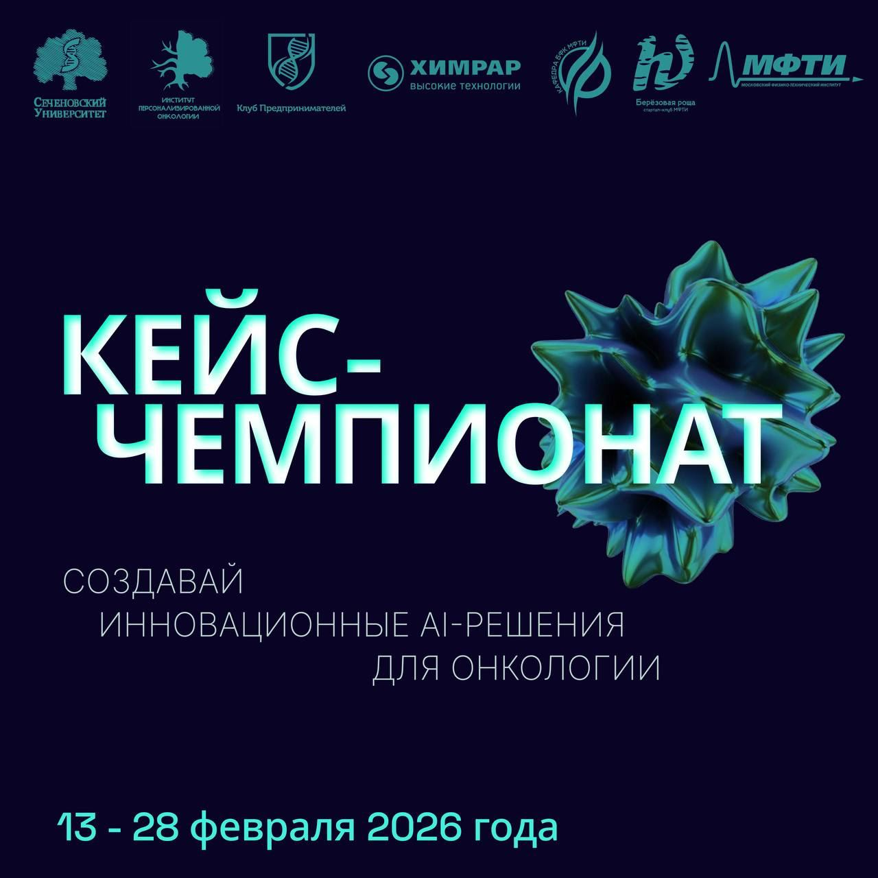 С 13 по 28 февраля при поддержки кафедры БФК пройдёт кейс-чемпионат, посвящённый применению AI в медицине и научных исследованиях. Участники будут работать над кейсами, связанными с разработкой AI-инструментов для помощи в диагностике и лечении онкобольных.